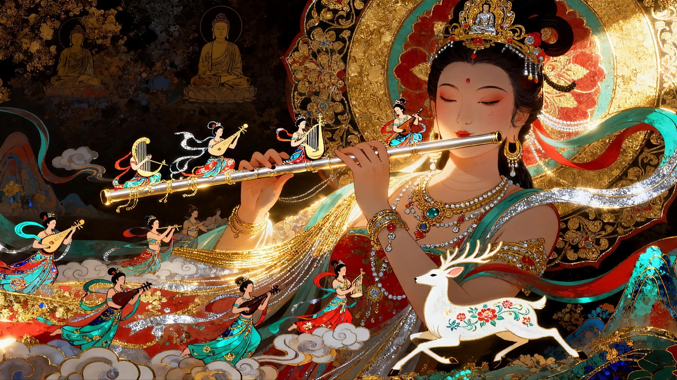 初久AI手札的视频 飞天乐伎|来亿点东方美学吗?丝滑一镜到底 一个人用AI做西安文旅片|带你看尽长安三千年 挑战6小时一个人用AI做短片|大梦敦煌三千世界 敦煌神祇|来亿点东方美学吗?丝滑一镜到底 挑战5小时一个人用AI做一条短片李白《将进酒》