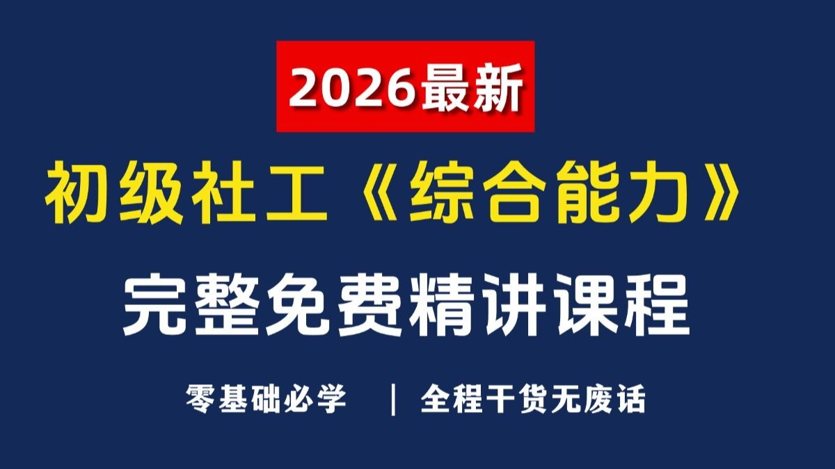 【B站强推】26初级社工《综合能力》完整精讲课程,零基础必学,全程干货无废话 up已经替大家尝试了,这份课程真的很管用| 2026初级社工 - 【26初级社工备考资料评论区置顶领取】