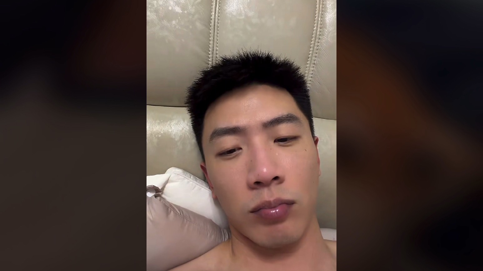 户外深夜直播的可爱肌肉男