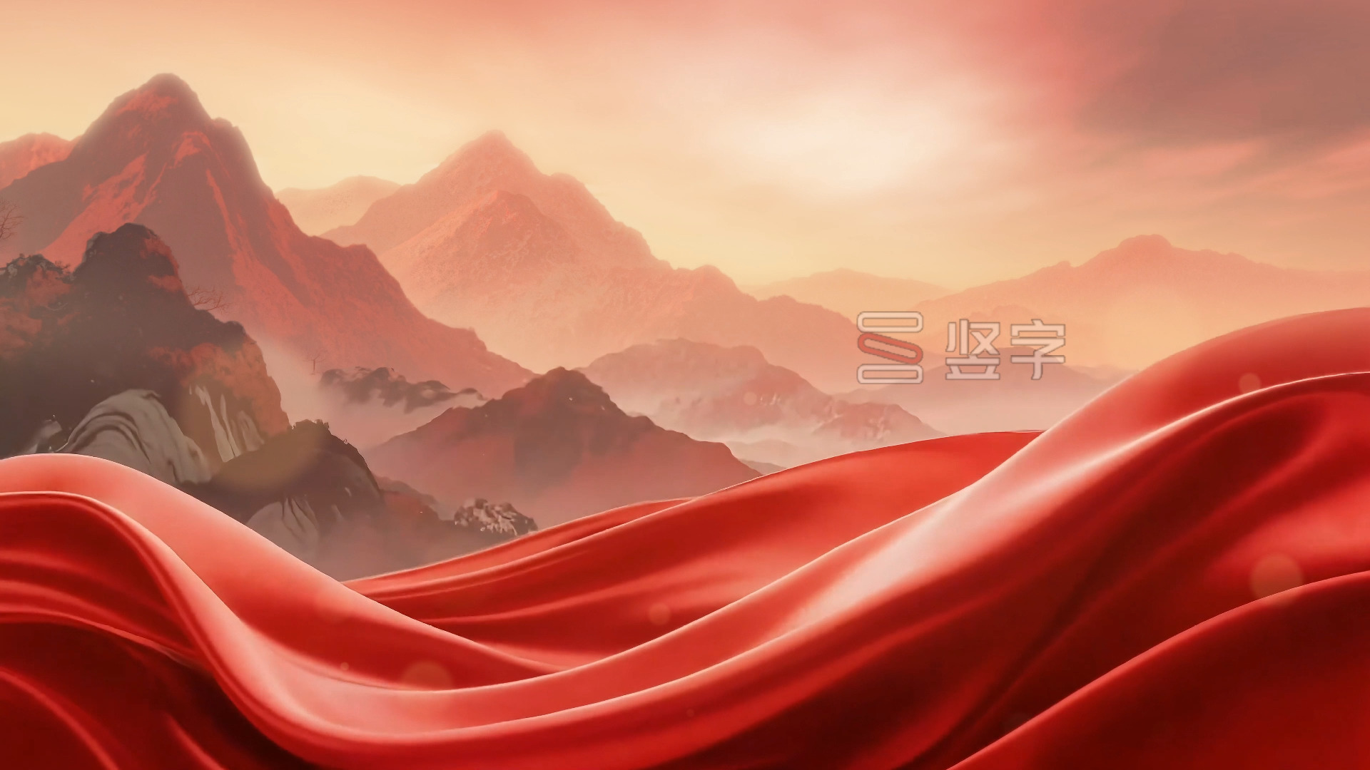 可商用视频素材大气红绸爱国教育山峦远山朗诵表演舞台LED大屏背景视频素材
