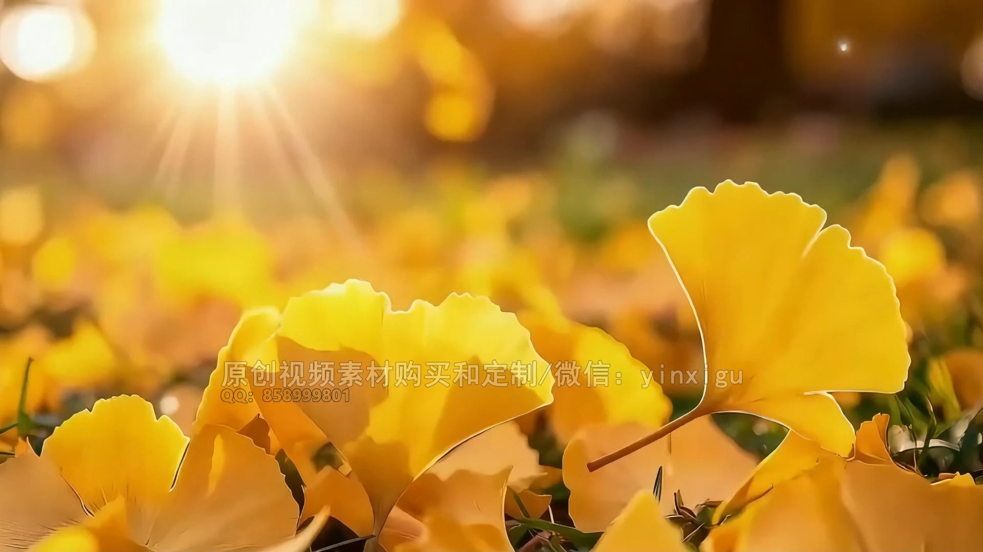 阳光下散落的银杏叶特写114#视频素材