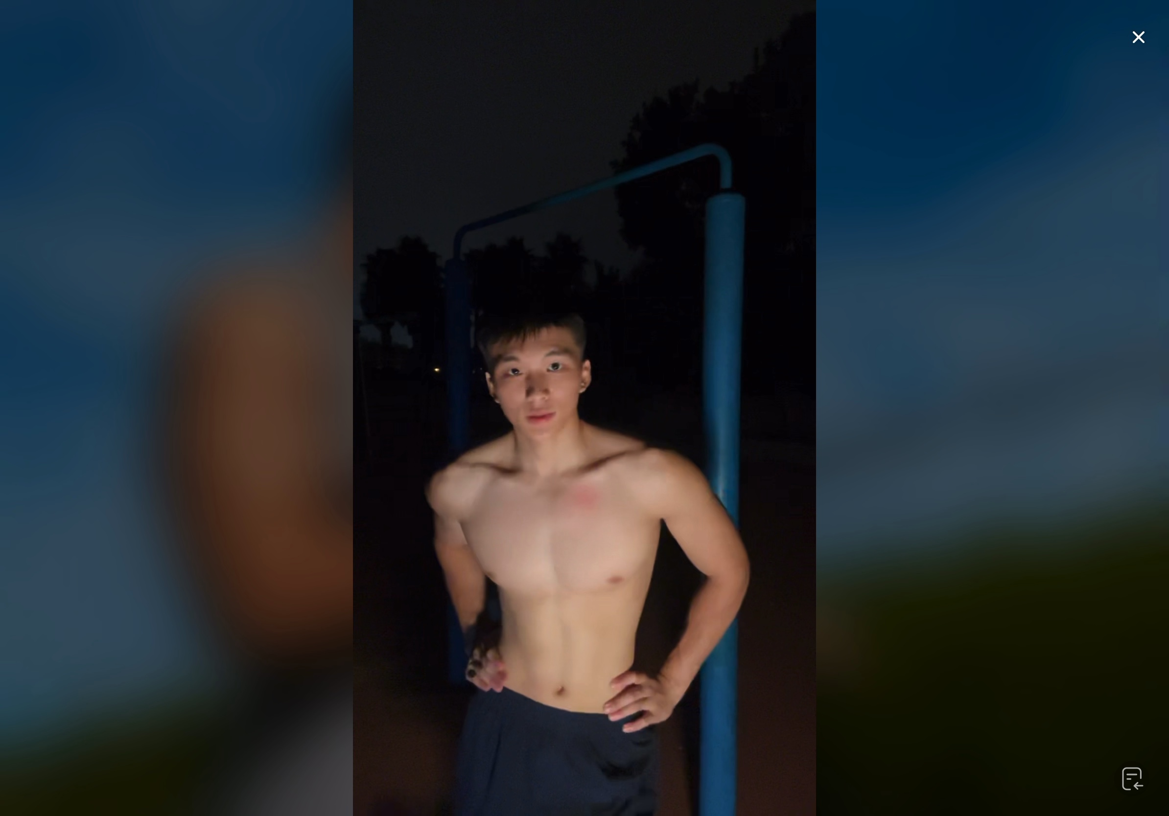 户外深夜直播的可爱肌肉男