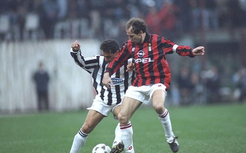 米兰名垂青史的钢筋混凝土防线,据说萨基让他们四个后卫马路上散步都要保持好平行站位