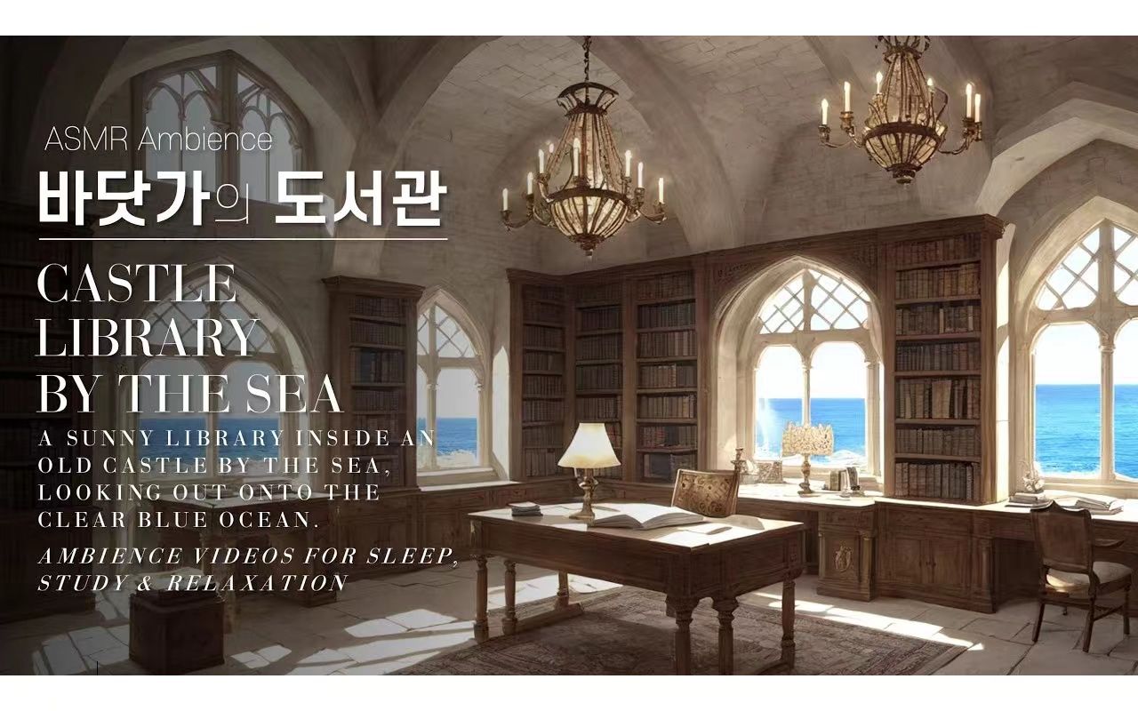 【白噪音】在度假海滨城堡的书房内看书 书本翻页 壁炉噼啪 海鸟海浪 维多利亚时代 室内氛围音 环境音