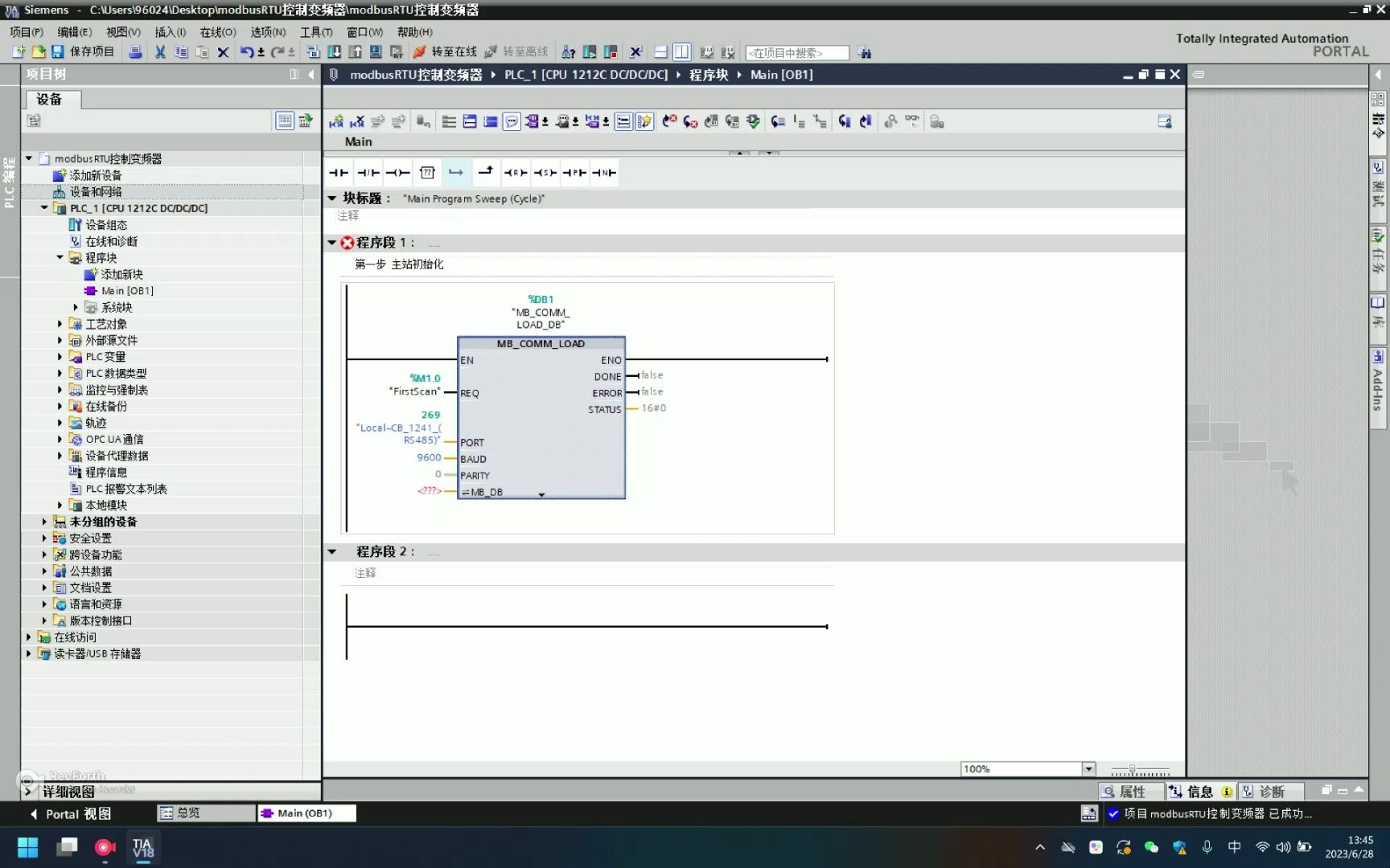 西门子1200modbusRTU控制变频器