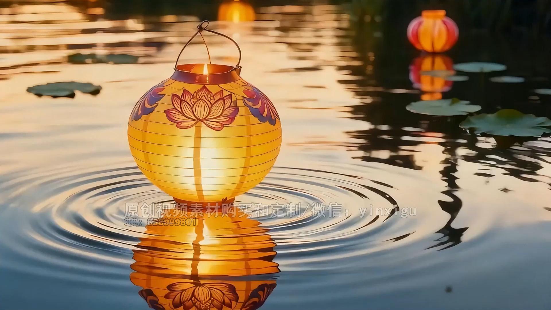 水面漂浮的装饰灯笼2665#视频素材#原创