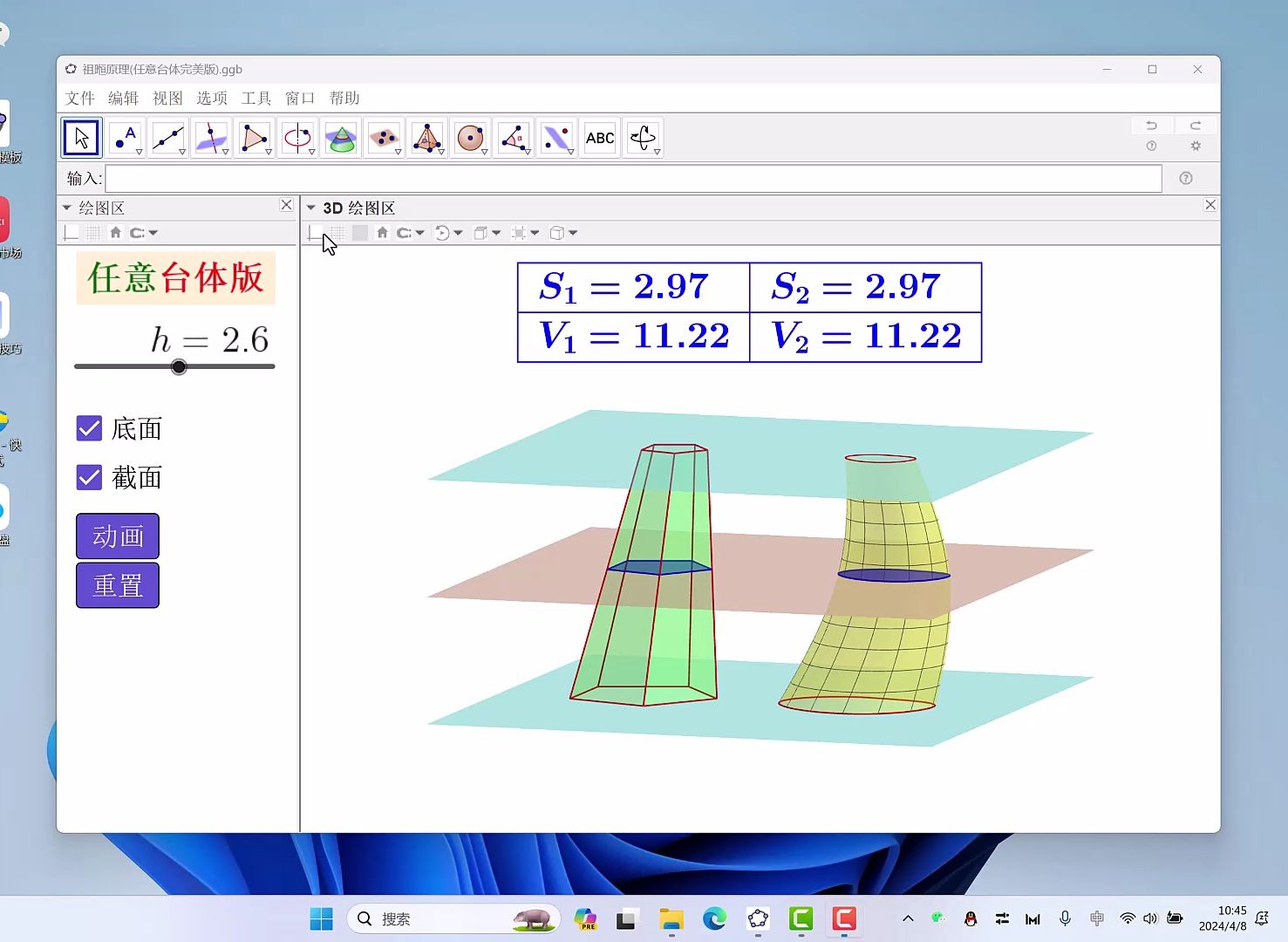 geogebra教程,祖暅原理,柱体版,课件制作教程第二集