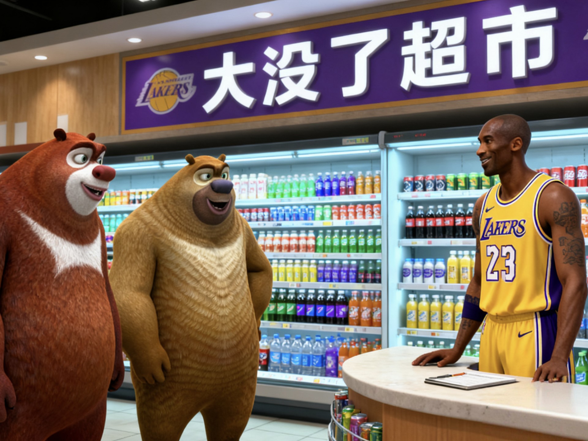 熊大熊二来到科比开的超市