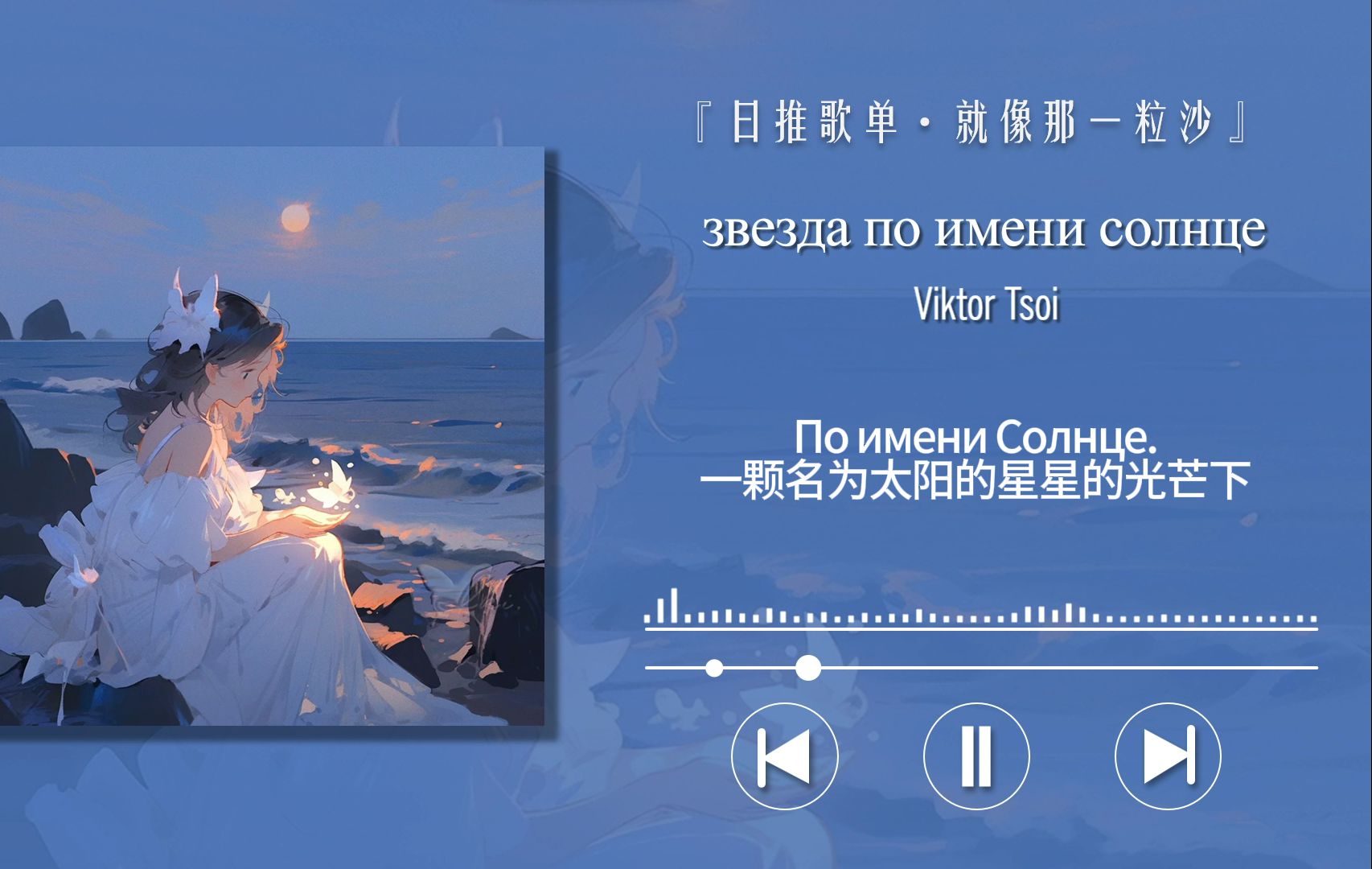UP主: 封面: 简介:感谢您支持我的视频,可以给个免费的赞再走吗~今日歌曲:Viktor Tsoi - звезда по имени солнце图片,音频均来自网络,请支持原版创作若侵权,告知我会...