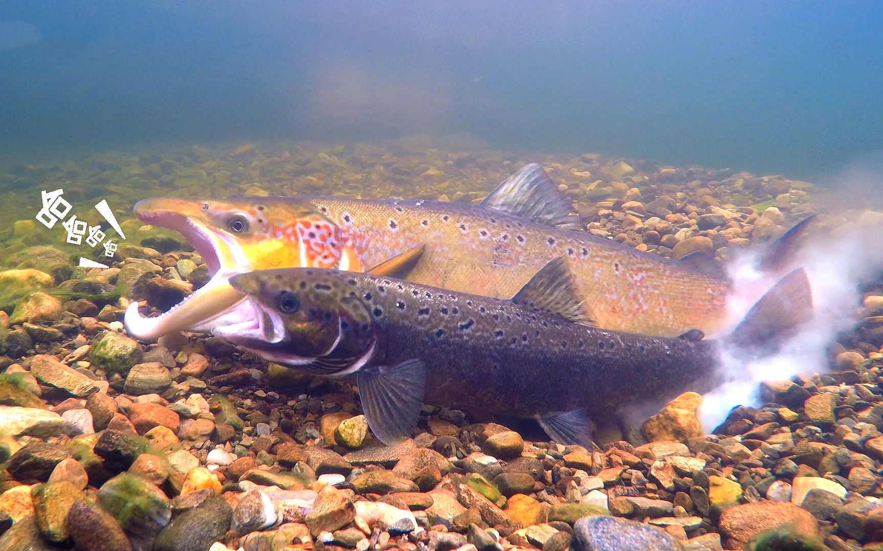 雌性鲑鱼产卵时,雄性就默默当个老六