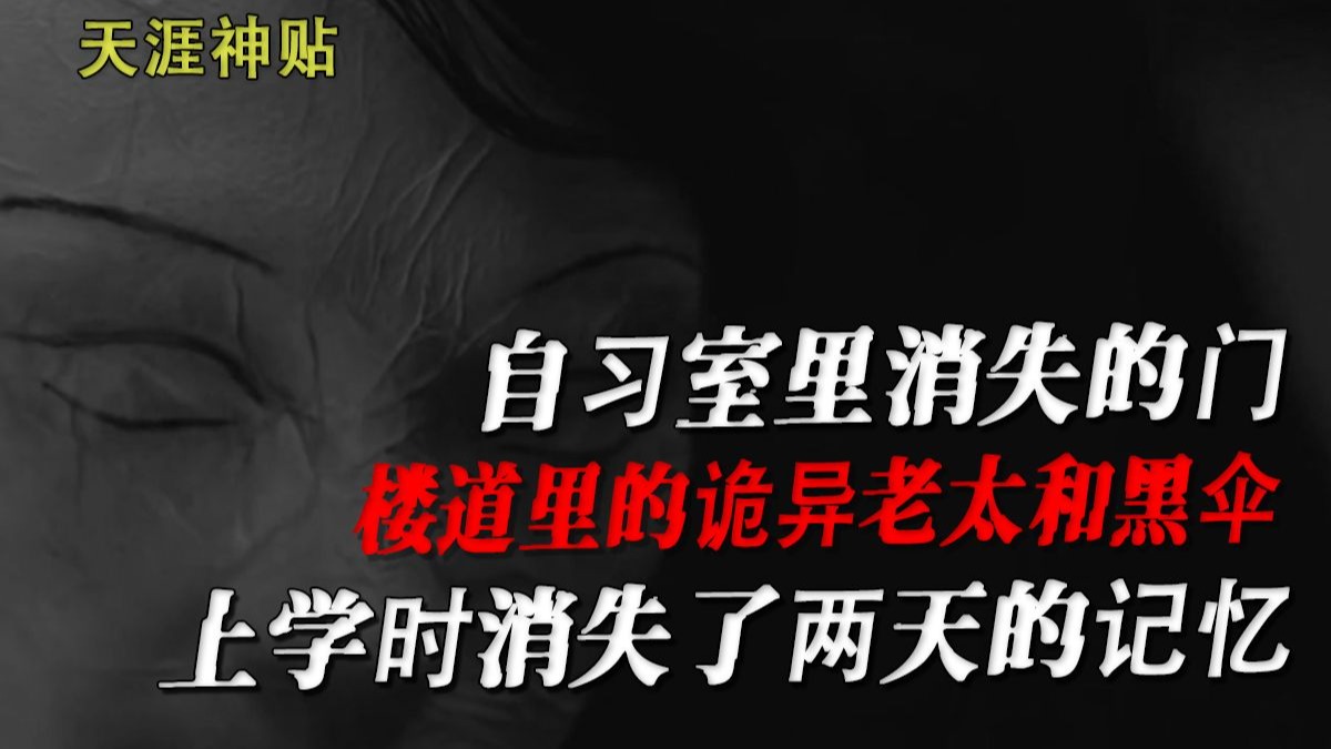 【天涯神贴】-自习室神秘女孩和消失的门|楼道里的诡异老太和那把黑伞|上学时消失了两天的记忆