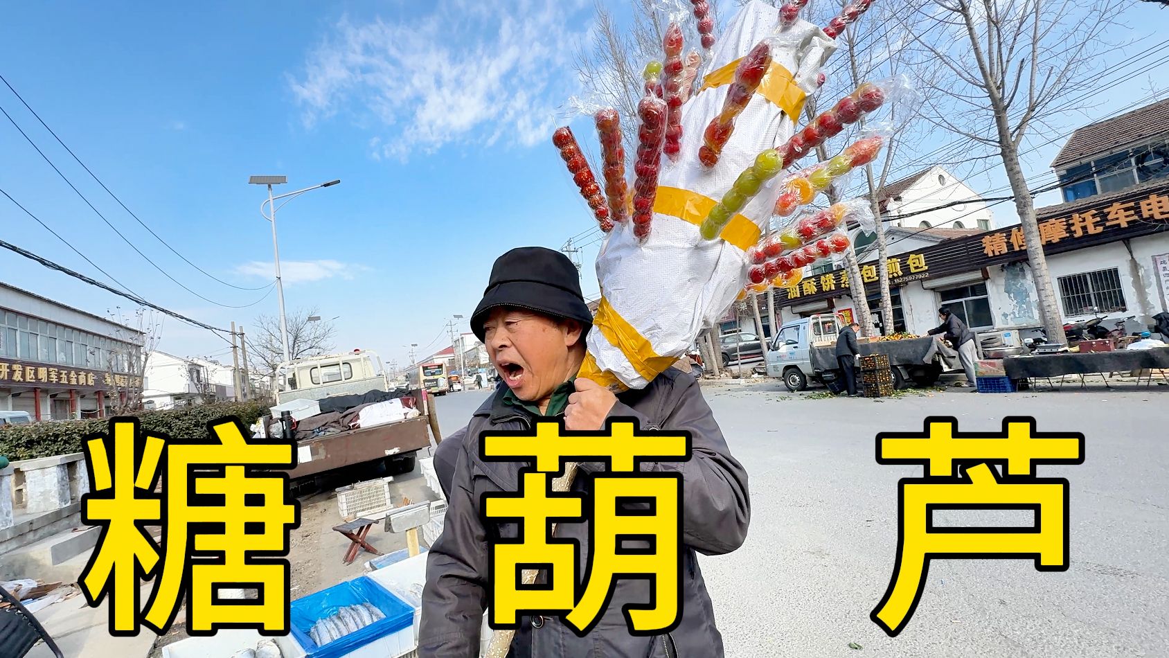 69岁老汉,赶集卖糖葫芦,一天能挣多少钱?