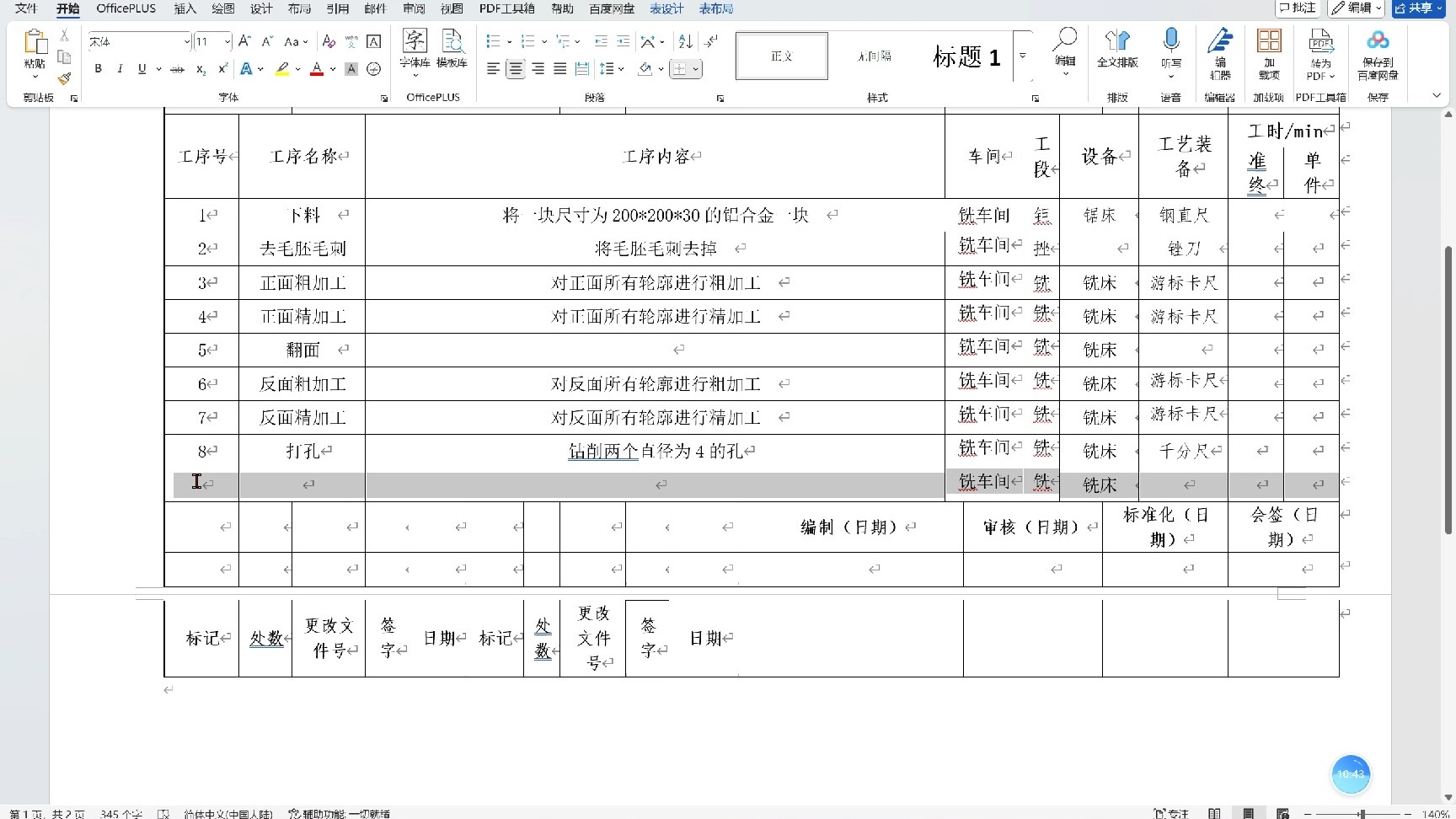 工艺卡与工序卡的填写