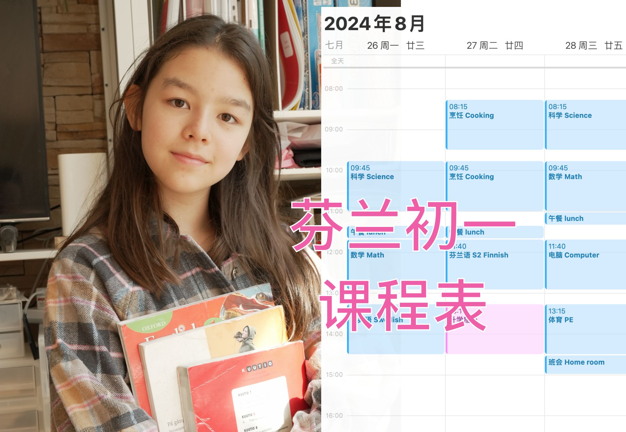 🎒 芬兰初中生的一天是怎样的?这学期的课程表真的很丰富!每天75分钟一节课,学的东西超多!从烹饪课上的苹果派🍏,到科学课的研究方法🔬,还有瑞典语、英语、体育课等,...