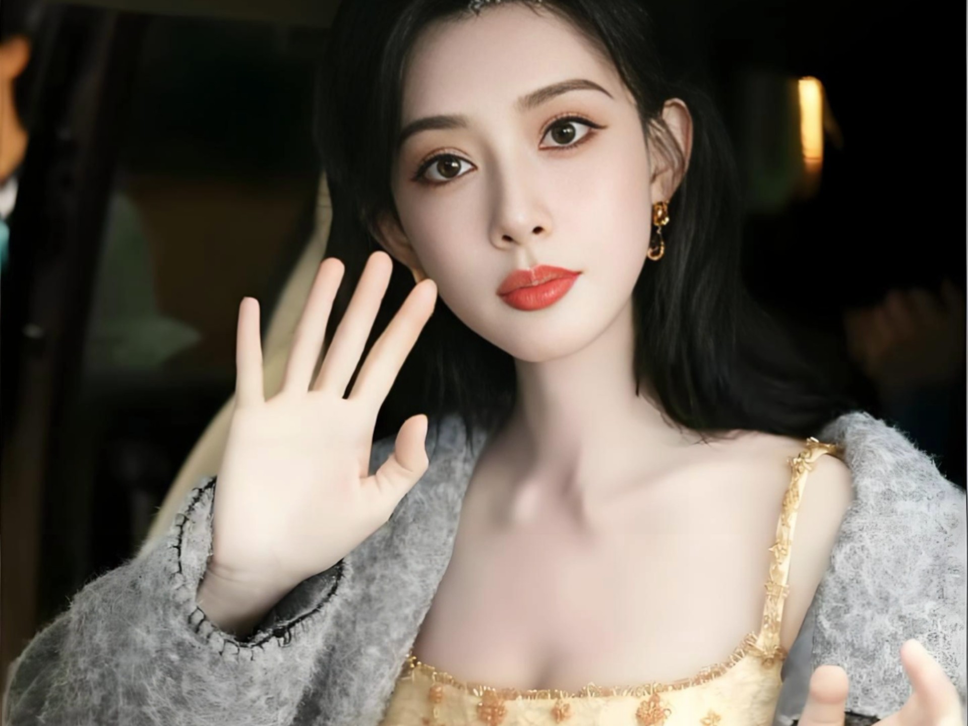 吴谨言抹胸裙写真美图。