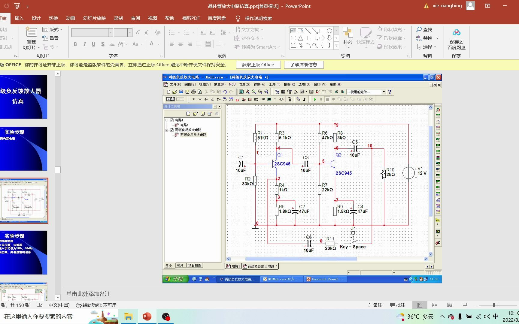 计算机仿真电子技术_Multisim14.2(三极管两级负反馈放大器仿真)