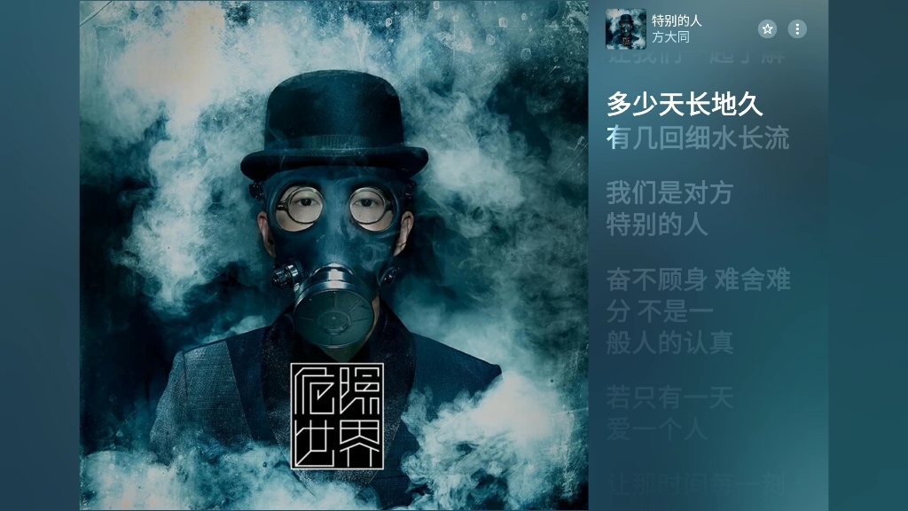 第一次听到这首《特别的人》,就被它的暗黑氛围感和温柔内核的反差击中了。 海报里的防毒面具、缭绕的烟雾,像极了我们在感情里的样子:戴着层层伪装,不敢轻易袒露真心,...