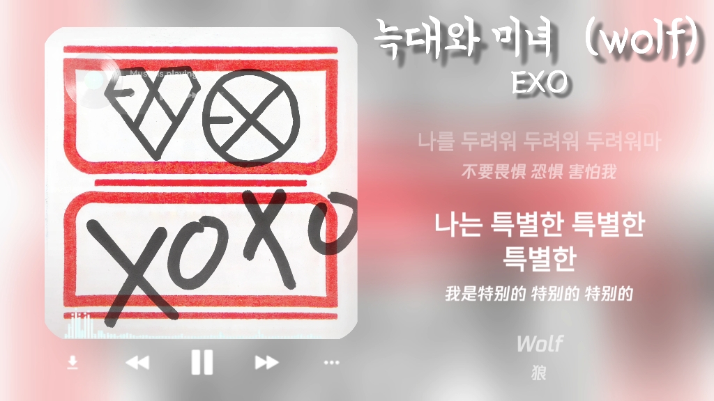 UP主: 封面: 简介:歌曲名:늑대와 미녀 (Wolf)歌曲翻译名:狼与美女歌手;EXO语种:韩语流派:舞曲专辑:The 1st Album XOXO (KISS&HUG)专辑发行时间:2013-06-03歌曲简介:《늑대와 미녀 (W...