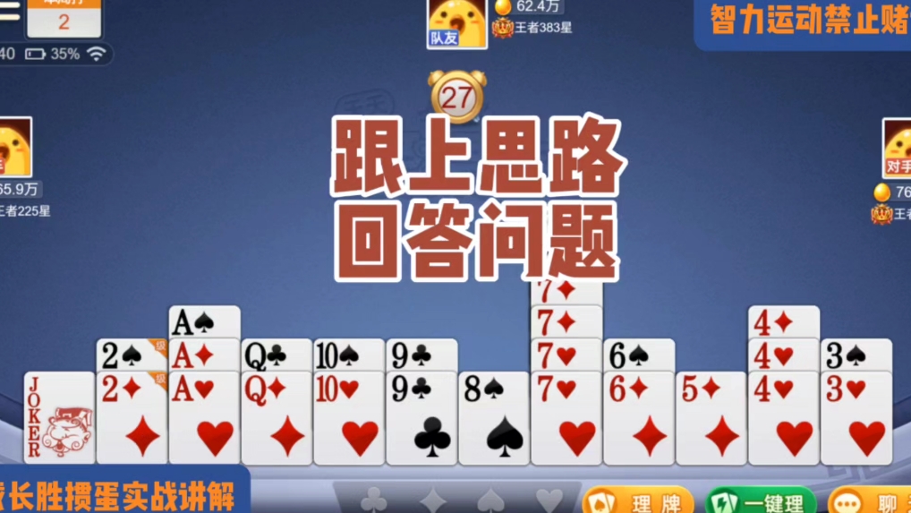 戴长胜掼蛋实战讲解(1645)跟上思路回答问题