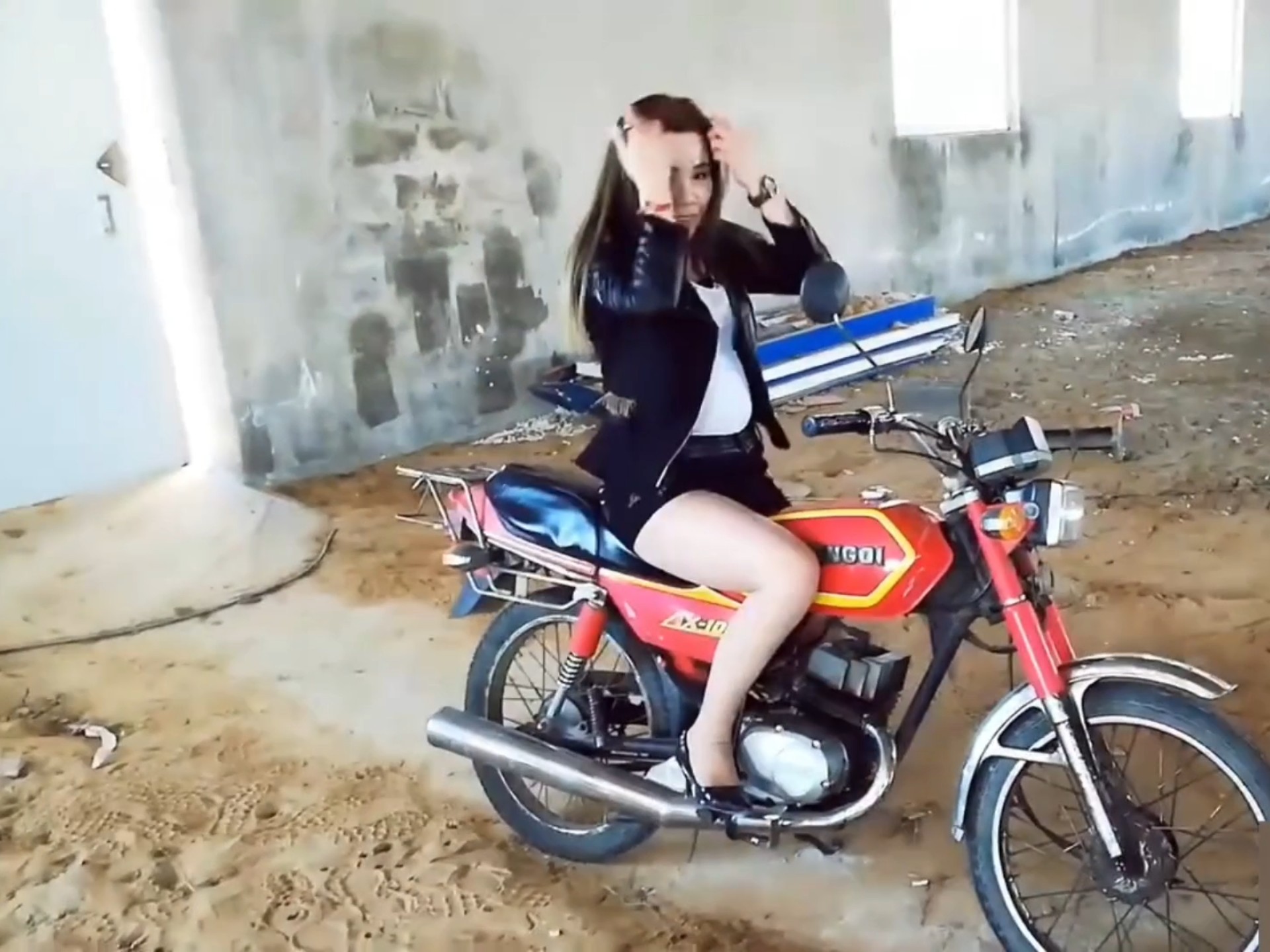 美女性感踩发摩托车油门踩踏