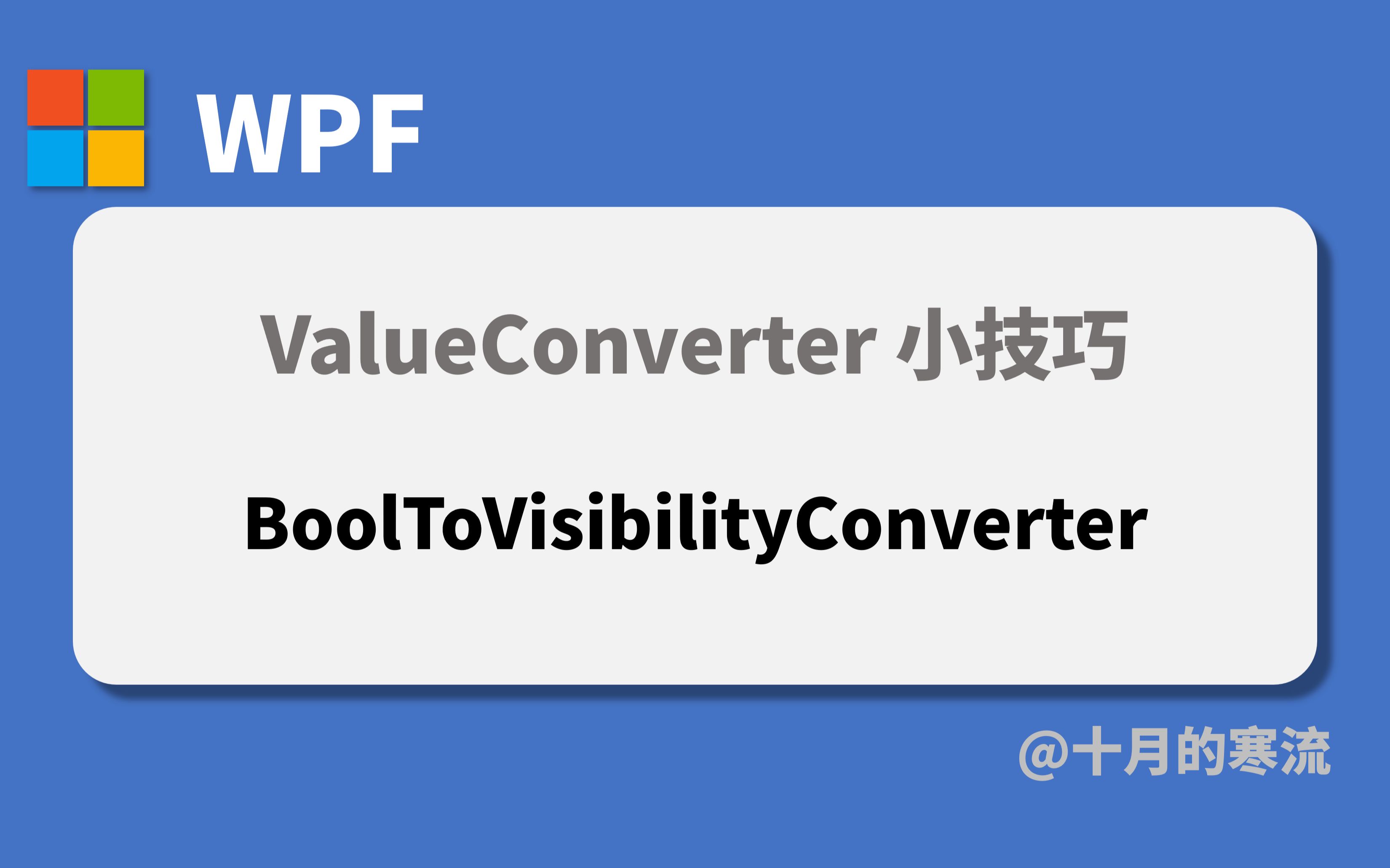 UP主: 封面: 简介:BooleanToVisibilityConverter源代码:https://source.dot.net/#PresentationFramework/System/Windows/Controls/BooleanToVisibilityConverter.cs,220e750b66c04350