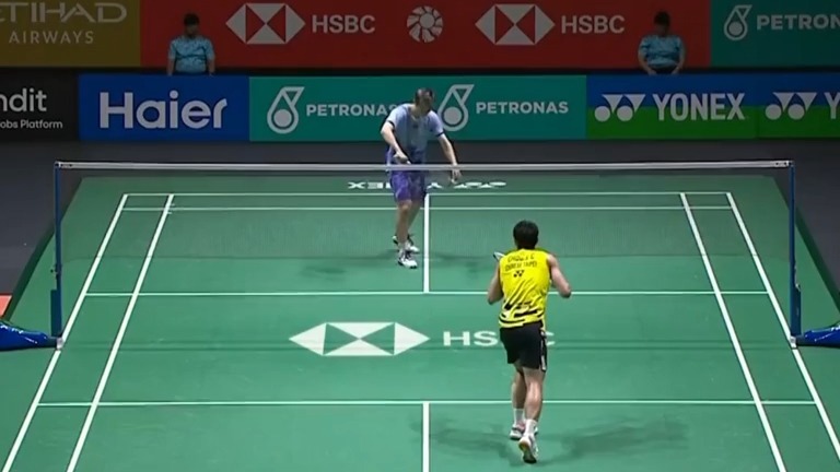 石宇奇网前假动作,秀翻周天成