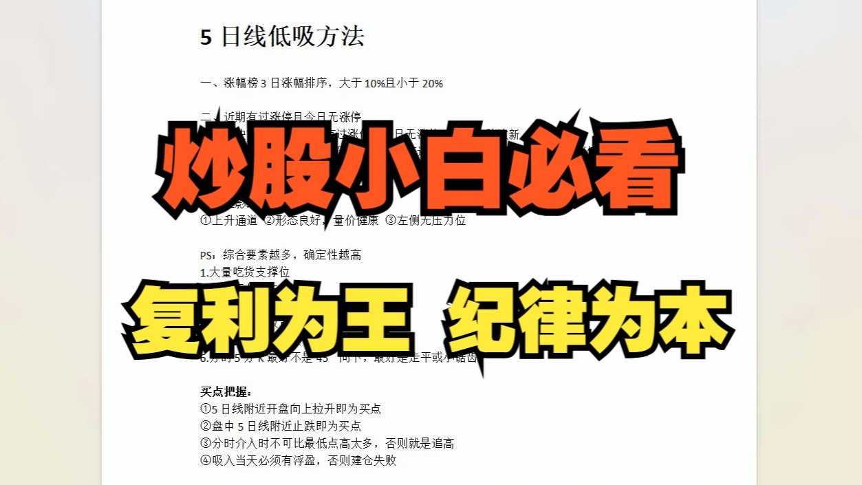 超短小师妹的视频 牛市机会,短线战法解析 见证历史!十年新高 短线核心票解析 商业航天绝对主线,暴打所有看空的 牛市不讲空,调整为了下一次的进攻 指数开门大涨,牛市来啦? 指数4000点大爆发,脑机大涨,能否走成新主线? 稳定盈利,一条视频讲清楚 弱转强战法,低吸大长腿 二板定龙头!胜率90%一进二选股! 买在起涨点,半路抓首板模式教学 大肉收官了,我们明年再会 高低切,低位新龙给机会了 开门红,马前炮,动手 跨年妖股明牌,必须满仓梭哈 机会来了的时候干就完了,相信模式 连续涨停,这波赚麻了 连续吃肉,赚麻了 涨停了,不能随便开香槟 回收失败,明天怎么看?