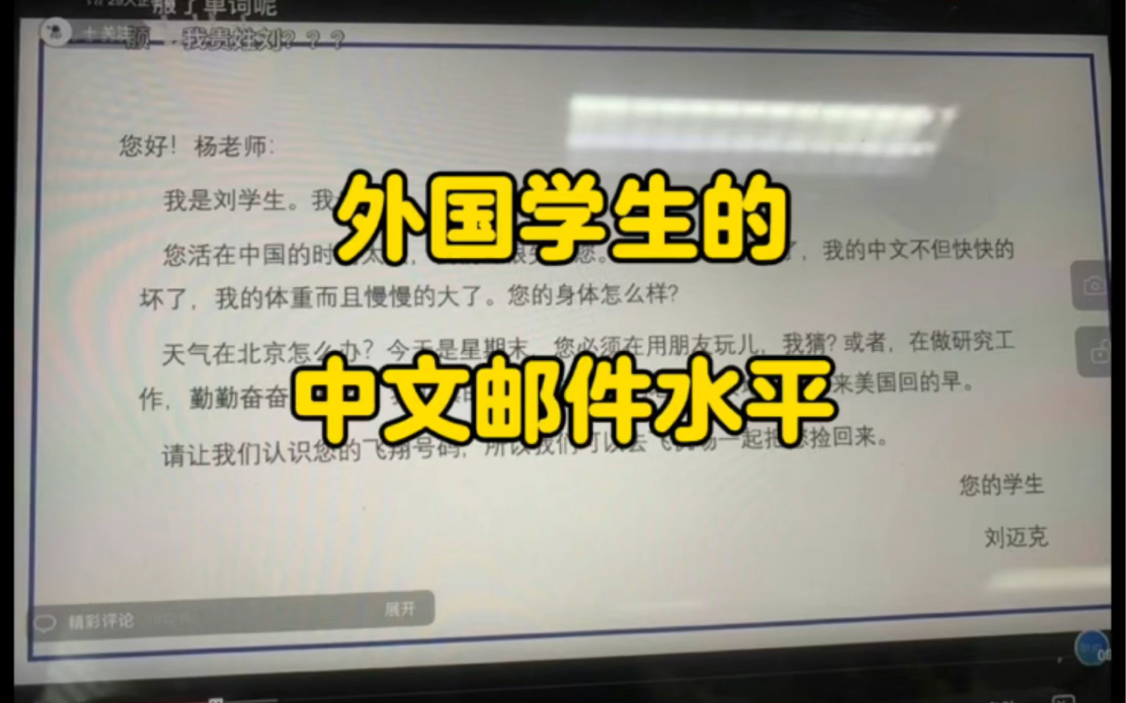 外国学生的中文邮件水平…