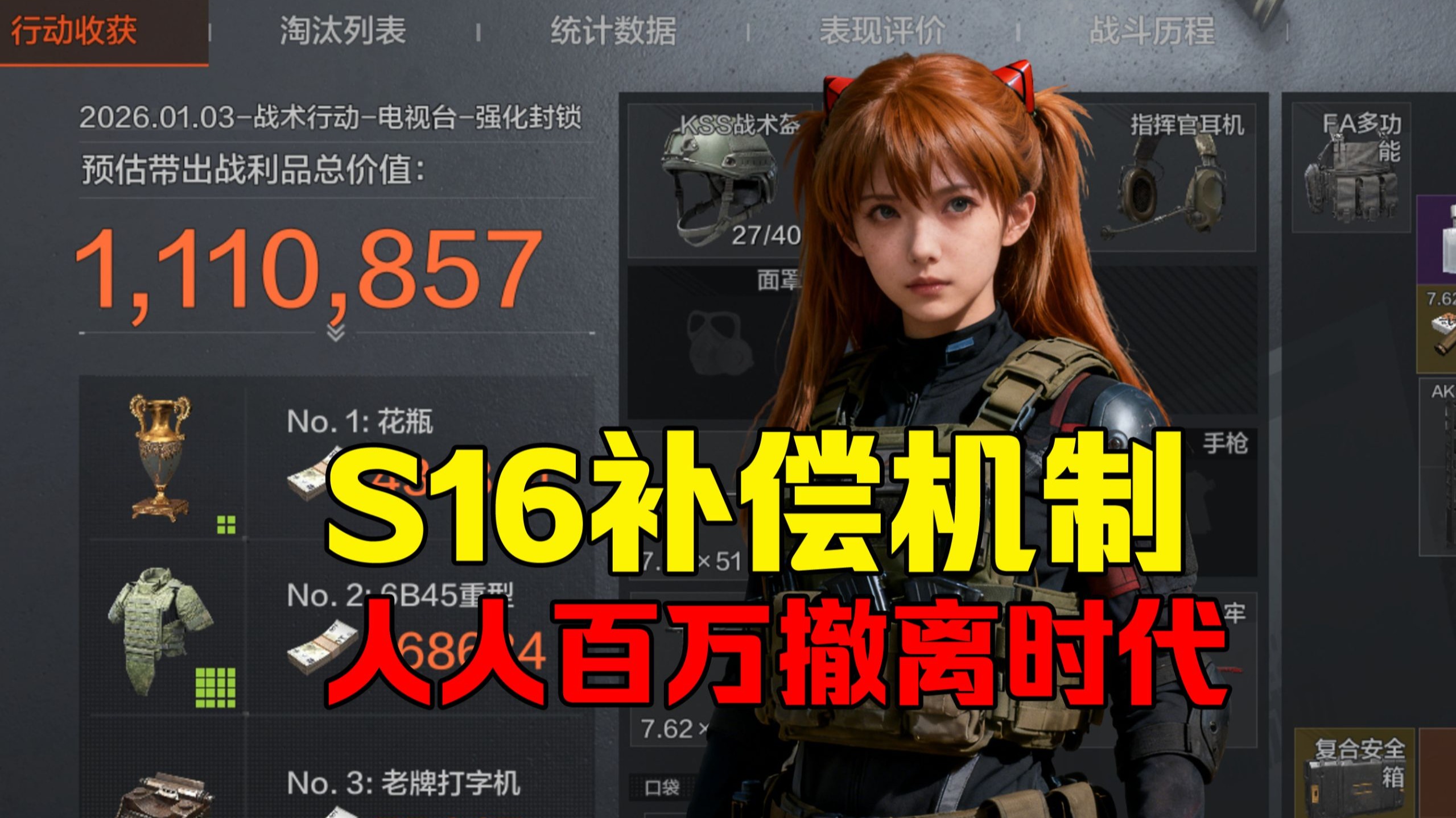 暗区突围S16机制,老玩家登录必定补偿!人人百万撤离轻轻松松!