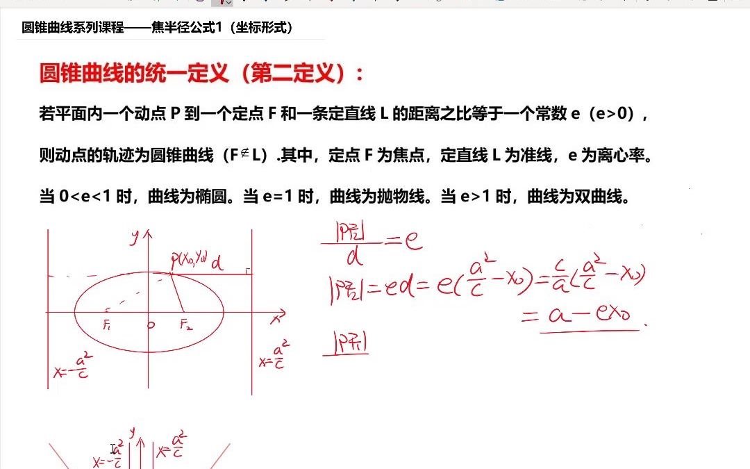 高考数学圆锥曲线系列课程 圆锥曲线第二定义及焦半径公式推导