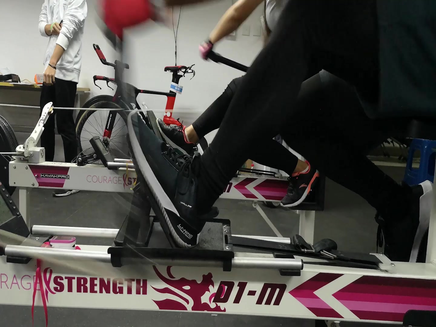 上海中医药大学龙舟队进行龙舟测功仪(划船机)训练