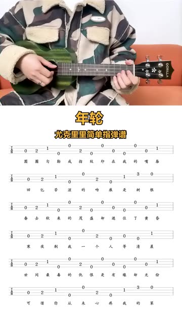 《年轮》尤克里里新手指弹曲谱分享