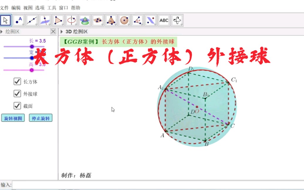 【GGB案例】3D绘图-长方体(正方体)的外接球