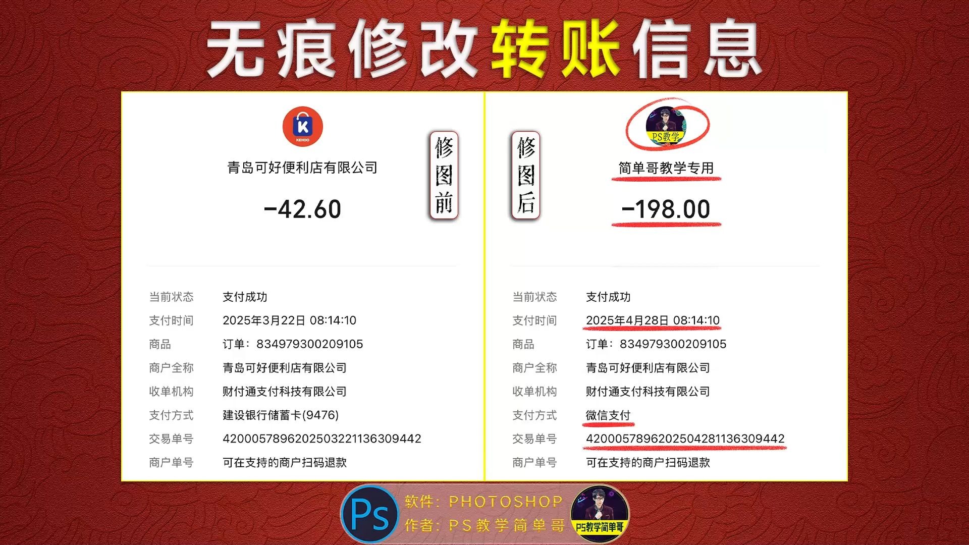 PS教学:无痕修改转账界面信息,所有看到的信息都能改