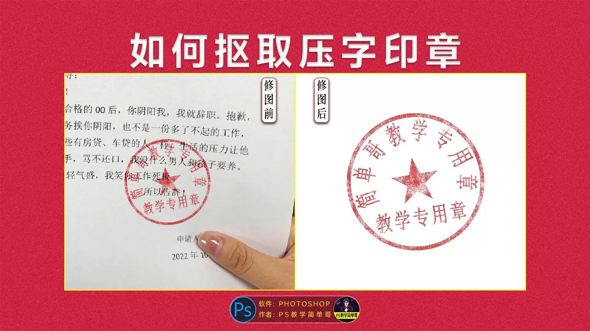 压字印章如何完整抠取?PS实用抠图教程:抠取印章
