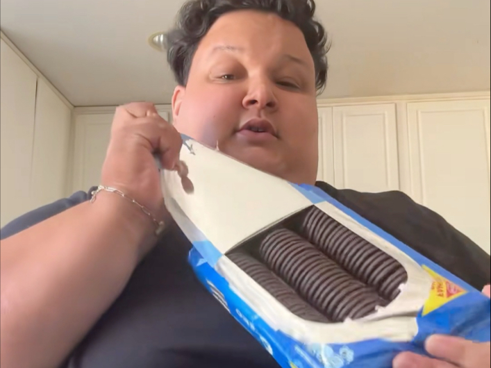 美国良子吃牛奶泡奥利奥