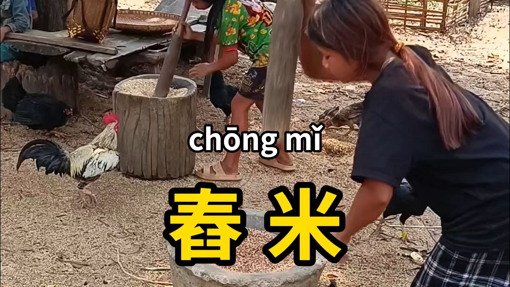 舂米,是一种很古老的稻米脱壳方式!