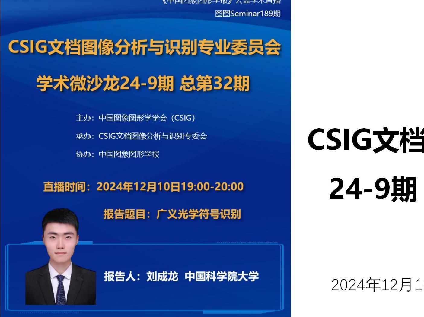关键词:光学字符,OCR,GOT举办时间:2024.12.10报告人:刘成龙(中国科学院大学)主持人:陈锦岳(中国科学院大学)