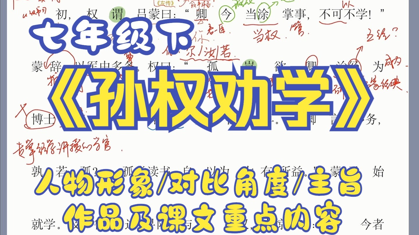 七下|「非复吴下阿蒙」《孙权劝学》考点全扒!一个视频搞定