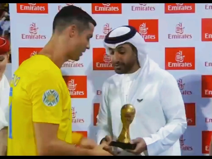 C罗连续四场进球 赛后领取全场最佳奖杯🏆 恭喜这位38岁小将连续四场进球⚽️