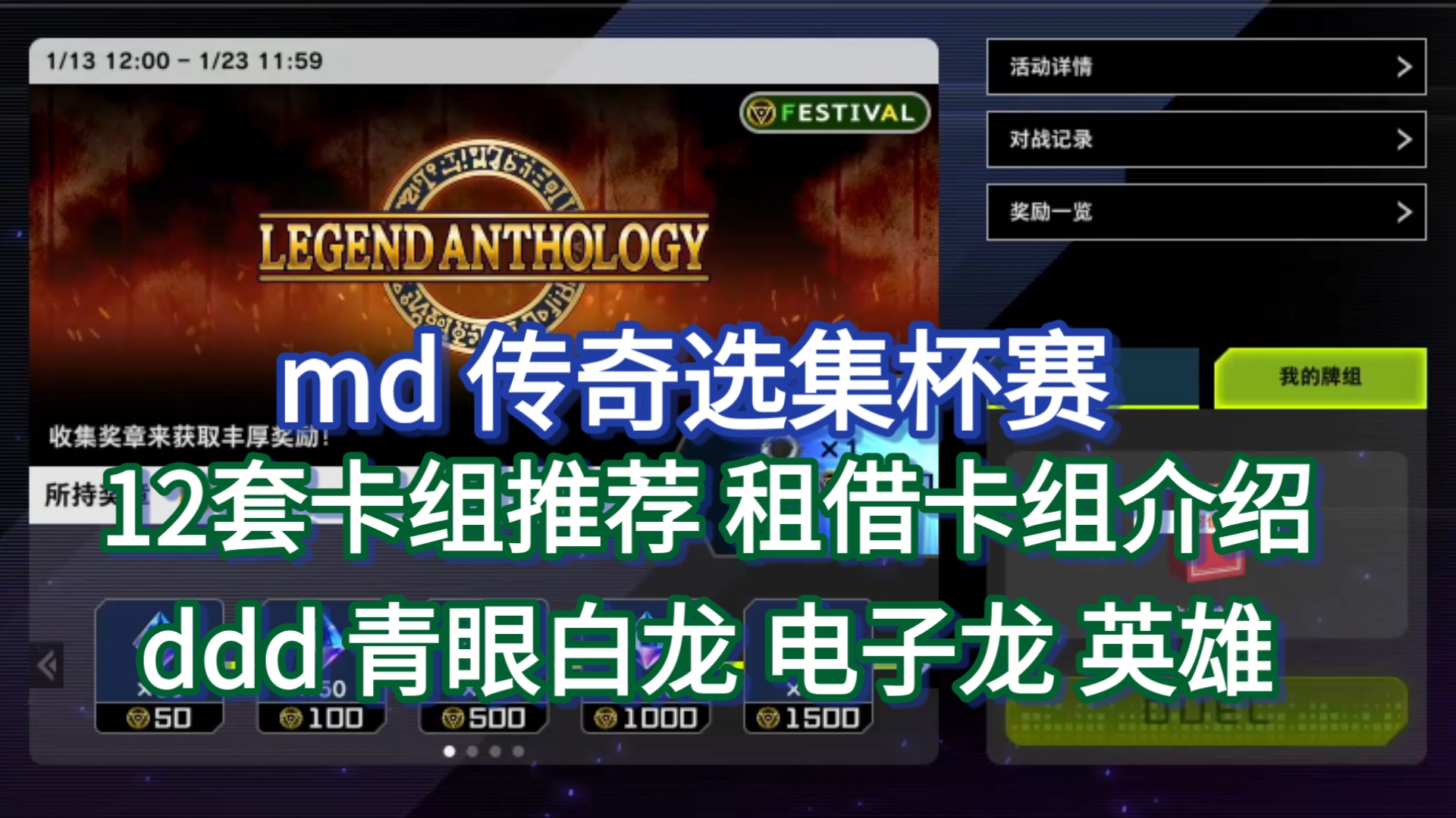 md 传奇选集杯赛 12套卡组推荐 租借卡组介绍 ddd 青眼白龙 电子龙 英雄 海晶少女