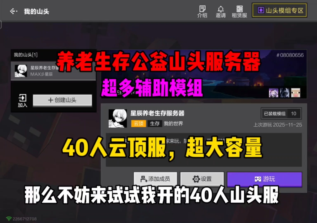 超好玩的养老生存山头服务器,公益40人云顶服