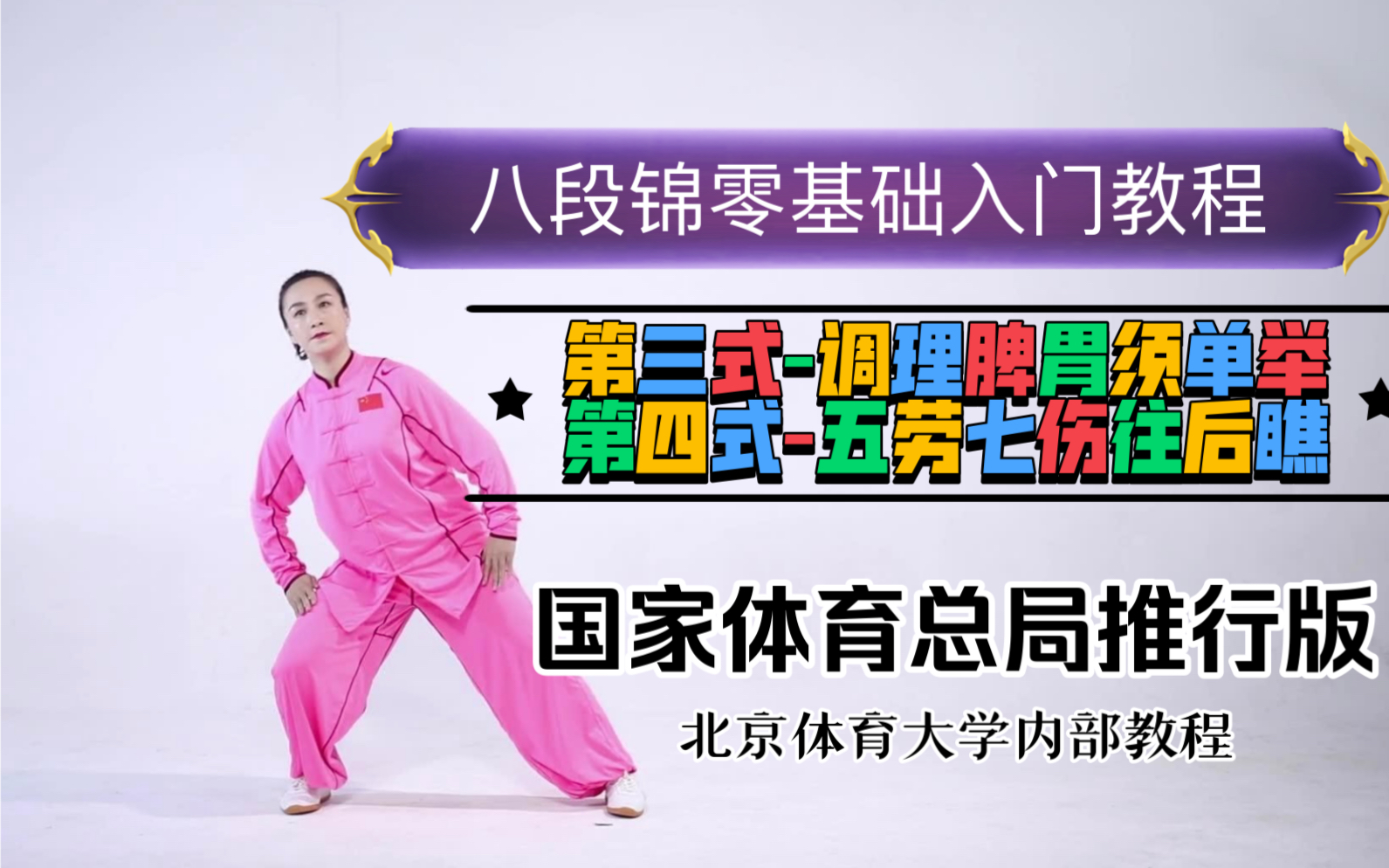 八段锦零基础入门教程-第3、4式-调理脾胃须单举/五劳七伤往后瞧-刘晓蕾老师