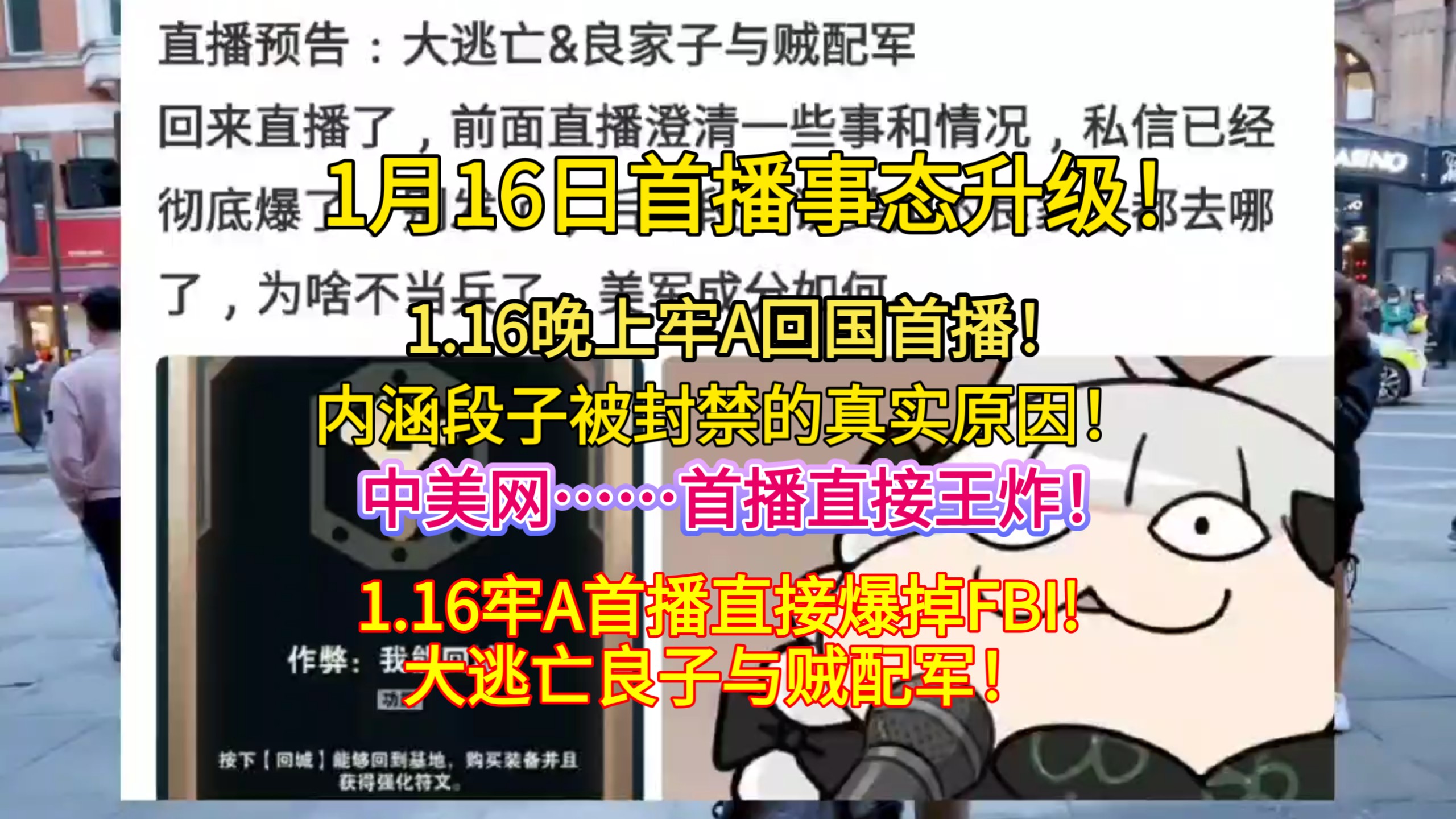 最热事件后续的视频 WC!太炸裂了!1.16牢A回国首场直播王炸!破圈跑路准备今晚决堤!1.16牢A内涵段子被封禁的真实原因,中美网... 1.16牢A:逃亡良家与乱臣贼子! WC!美国彻底爆了!1.15牢A提桶跑路!牢A牢真慎入! 两脚羊现点现杀!白切鸡风干高达!牢A直接爆搞幼年形态高达!纽约时代广场彻底爆了!