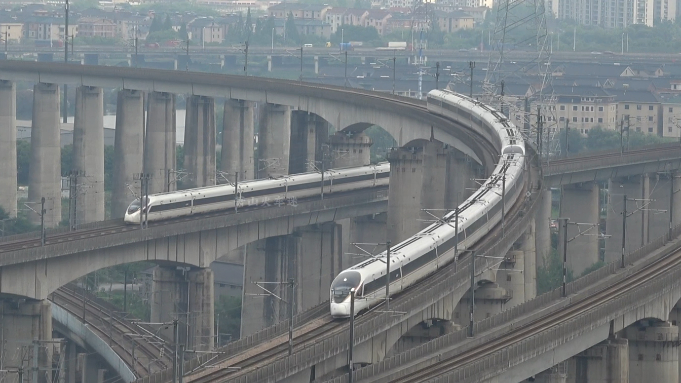这个机位绝了!分分钟都有车通过,什么高铁飙车、交叉会车、各种踩车,甚至4车同向,应有尽有!