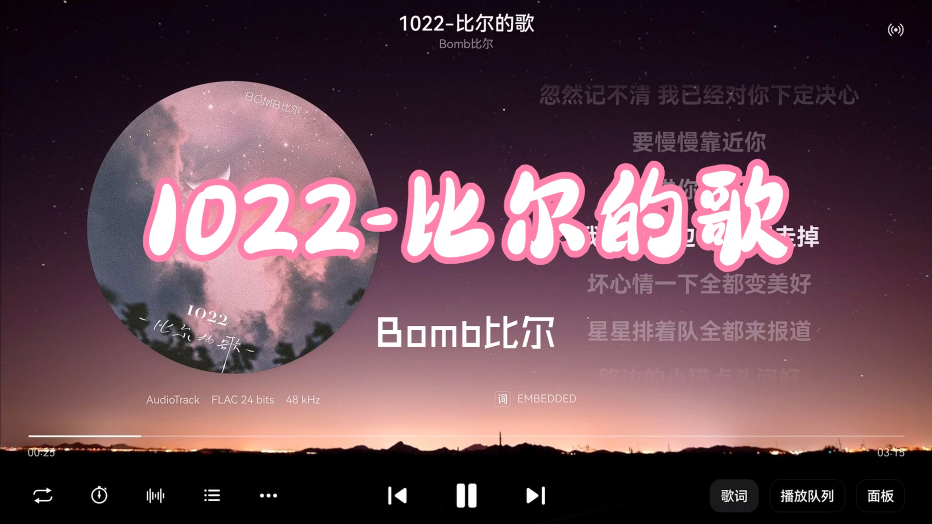 上岸音乐馆的视频 Sasablue《恋爱频率》“我会一点一点想你,一天一遍放在心里”-【Hi-Res无损】 Bomb比尔《1022-比尔的歌》“他们说今晚的夜色很好,应该有个人对我来撒娇”-【Hi-Res无损】 【无损Hi-Res】邓紫棋《光年之外》“也许未来遥远在光年之外,我愿守候未知里为你等待”-4K Jony J《山脚》“想要登上高山欲穷千里目,回头看看赶了不止千里路”-【Hi-Res无损】 严艺丹《爱的华尔兹》“踮起脚尖,提起裙边,让我的手轻轻搭在你的肩”-【Hi-Res无损】 华晨宇《好想我回来啊》“太多爱的名义奔赴在我的领地,那些只言片语戳中我的心”-【Hi-Res无损】 【无损Hi-Res】斯琴高丽、顾峰《犯错》“沉默不是代表我的错,分手不是唯一的结果,我只是还没有想好该怎么对你说”-4K SoMo《50 Feet》“Popped a pill”-【Hi-Res无损】 【无损Hi-Res】李荣浩《黑马》“你骄傲的存在,在百年之外也醒着,你骄傲的存在,在败了也值得” 李要红RedLi《Kiss Kiss Shy Shy》“只想要和你一起,Kiss Kiss Shy Shy”-【Hi-Res无损】 【无损Hi-Res】永彬Ryan.B《放个大招给你看》“想把自己放进冰箱呆上一天没人阻挡,我来帮你十倍十倍十倍十倍感受凉爽”-4K 苏天伦《拉个勾说永远爱我》“Hold up Imma keep it going”-【Hi-Res无损】 阿悄《在深秋》“迷人如爱沉默在深秋,为什么你还是不懂我”-【Hi-Res无损】 【无损Hi-Res】林俊杰《江南》“风到这里就是粘,粘住过客的思念,雨到了这里缠成线,缠着我们流连人世间”-4K 【无损Hi-Res】李荣浩《戒烟》“戒了烟我不习惯,没有你我怎么办,三年零一个礼拜,才学会怎么忍耐”-4K 【无损Hi-Res】蔡健雅《红色高跟鞋》“该怎么去形容你最贴切,拿什么跟你作比较才算特别”-4K 【无损Hi-Res】林俊杰《是你》“是你,是你,身后的青春都是你,绘成了我的山川流溪,为我下一场倾盆大雨,淋掉泥泞,把真的自己叫醒”-4K 【无损Hi-Res】陶喆《普通朋友》“等待,我随时随地在等待,做你感情上的依赖,我没有任何的疑问,这是爱”-4K 【无损Hi-Res】大籽/Lil E《放空》“放松再慢慢升空,被窝里做一个梦,外面的噪音太多,说什么don't wanna know”-4K 【无损Hi-Res】陈雪凝《绿色》"若不是你突然闯进我生活,我怎会把死守的寂寞放任了“-4K