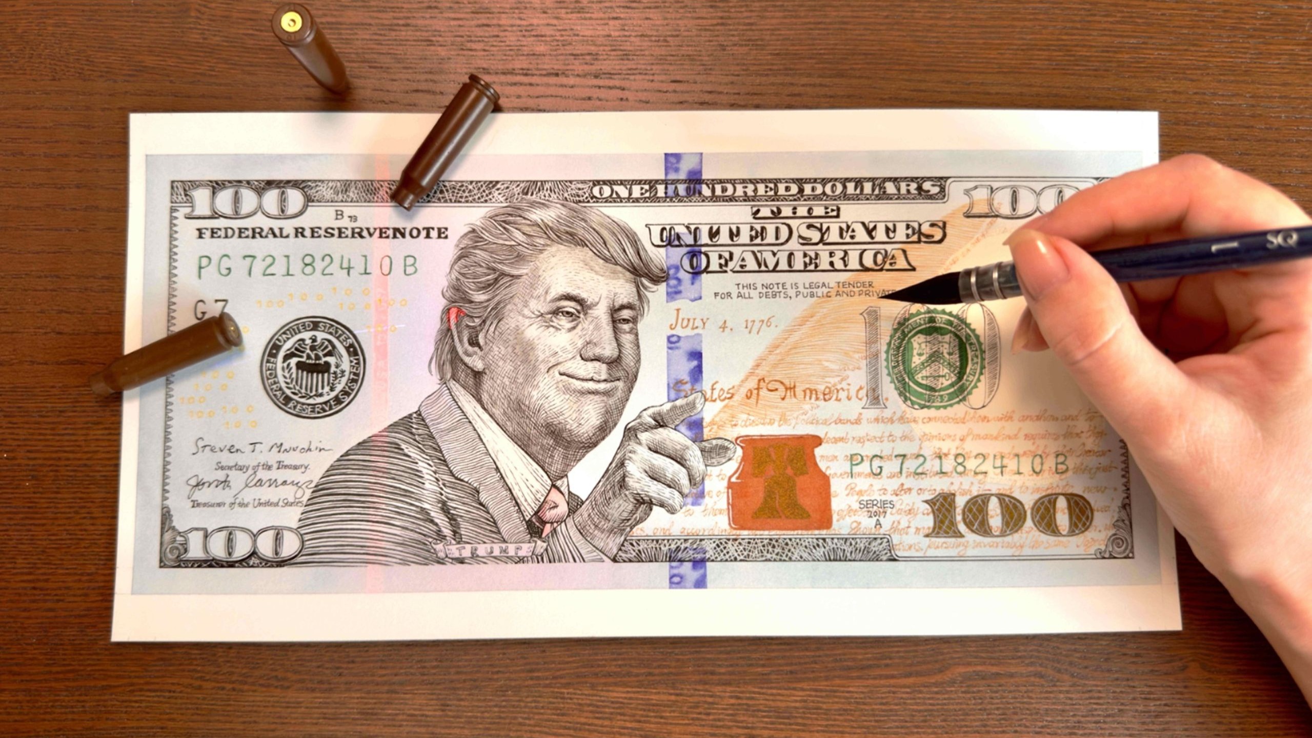 手绘特朗普美元【遇刺版】