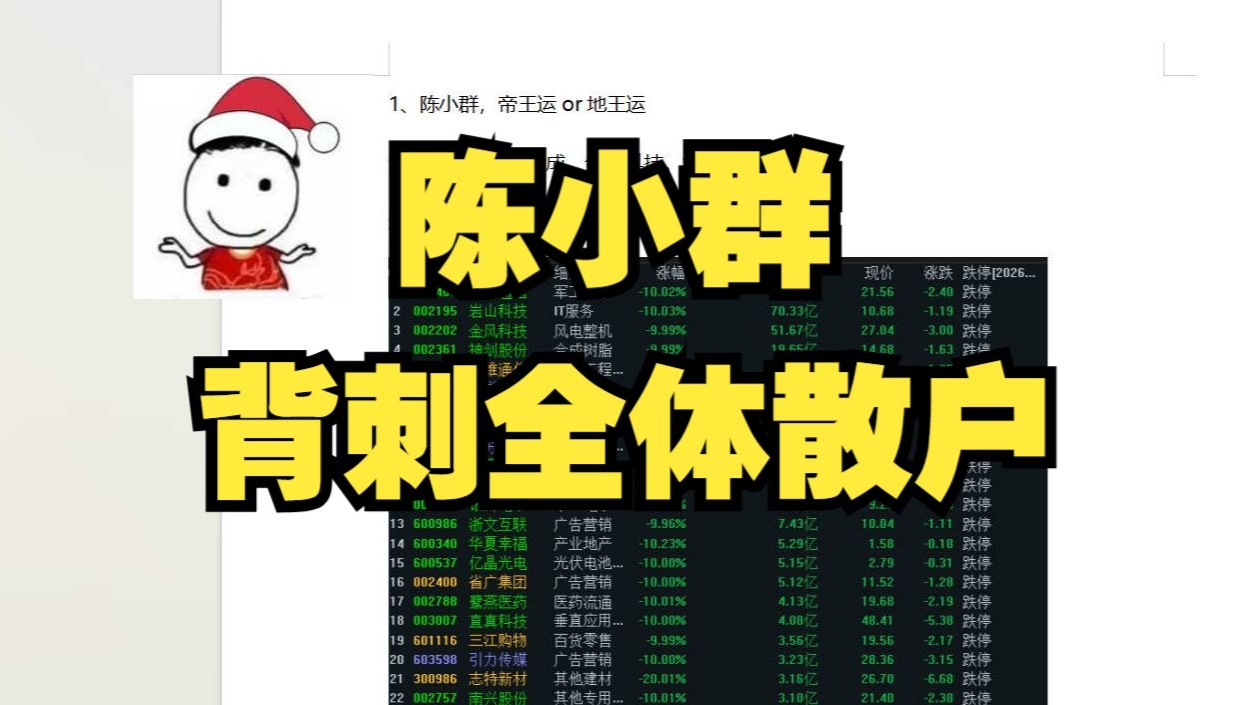 陈小群这波操作背刺散户,不把哥们当人