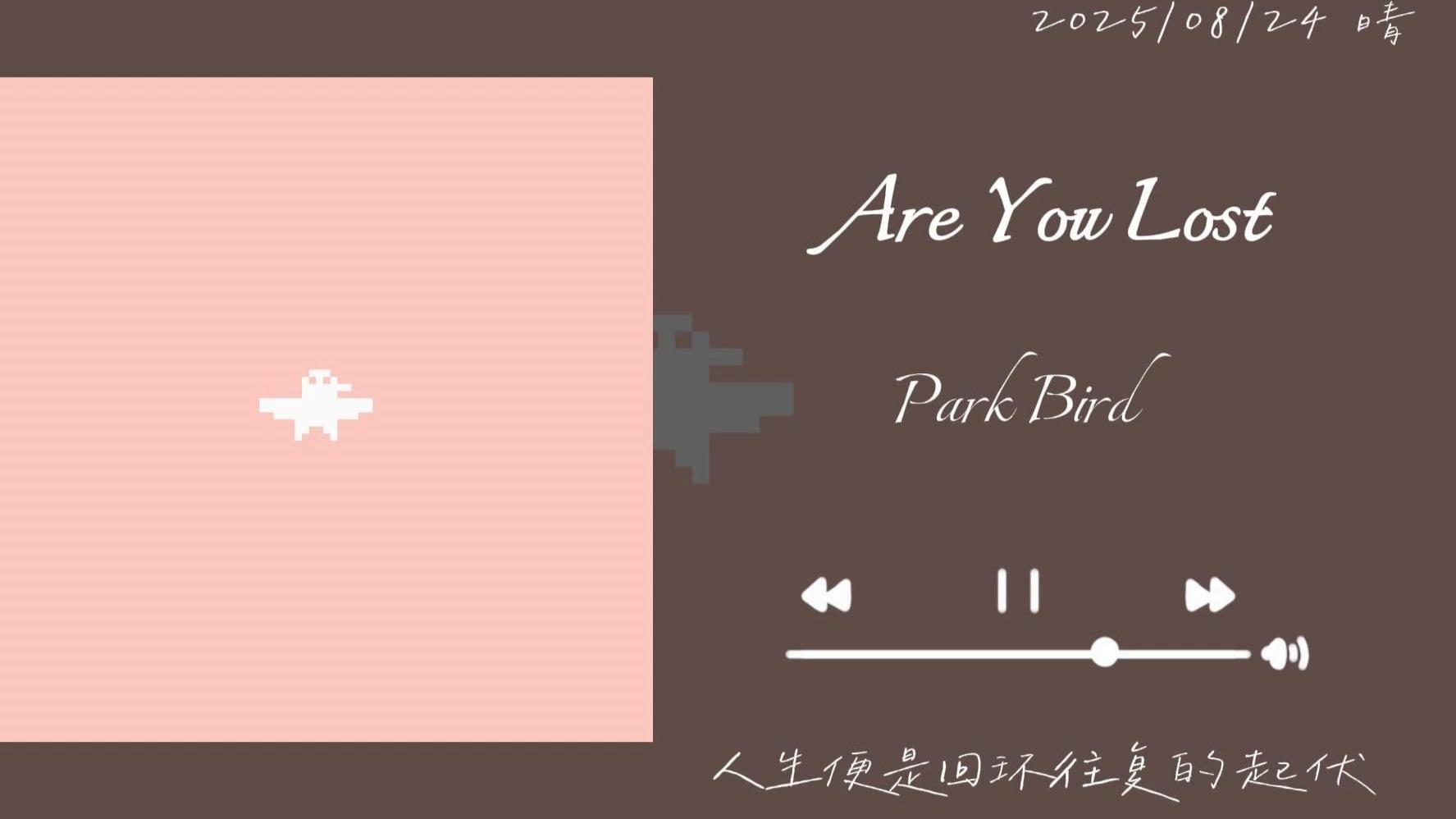 Are You Lost-Park Bird侵权请告知删除。本视频仅用于试听 请支持正版。人生便是回环往复的起伏
