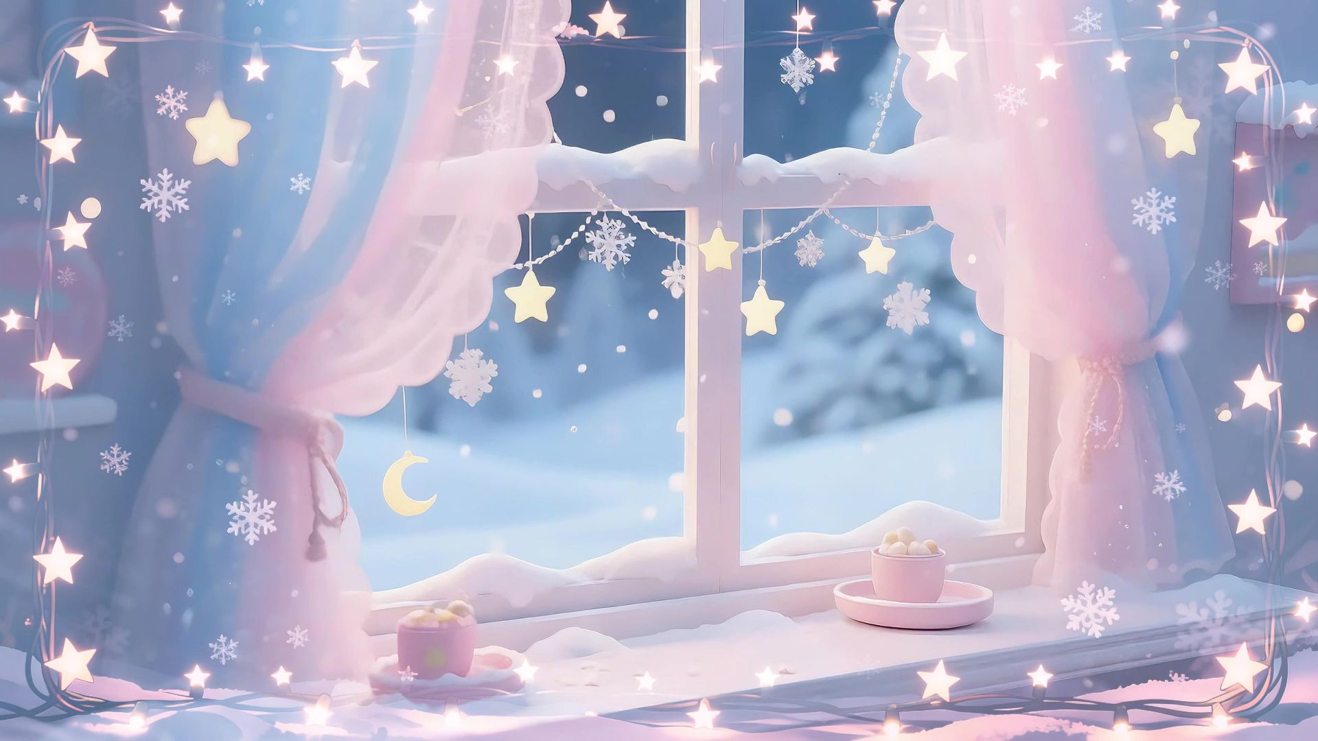 【粉色星夜】横版+竖版冬日暖冬直播现代背景粉色温暖虚拟主播直播VUP动态背景虚拟偶像直播背景